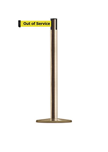 Tensabarrier 889U-2S-2S-MAX-NO-YEX-C - Satin Brass Post, 2" Wide, 13' Length Yellow Out of Service Belt , 38" Height, 2.5" Wide, 156" Length