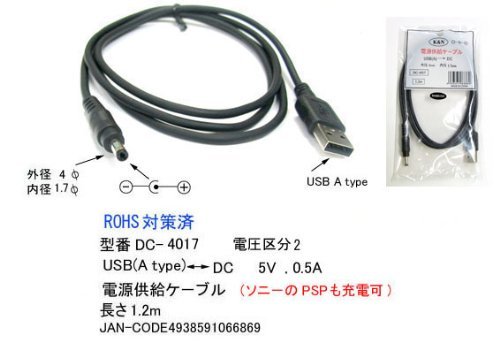 ● Model: DC-4017 ● Specifications: USB A type male - DC 5 V 0.5 A ● Cable length: 1.2 m