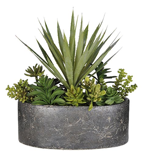 - Feature : Natural-Looking succulents / Artificial baby yucca and assorted succulents / Contemporary grey stone oval vase (14" x 7" x 6" tall) / Overall dimensions: 16" x 10" x 17" tall / Perfect complement for your office, home decor, or gift-giving