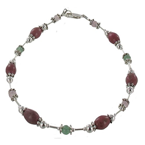-. Title : Womens Rhodonite, Rose Quartz, Aventurine & Sterling Silver Beaded Gemstone Anklet with Daisies