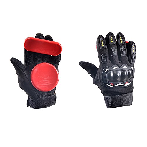 -. Feature : Comes standard with removable, replaceable round slider pucks / Heavy-duty, wraparound Velcro wrist strap ensures perfect fit / Also includes extra set of slider that can be professional player / High quality long board gloves,and you will get the attention of electric skateboard / Please can understand that it might have glue in the slider ,but dose not affect use