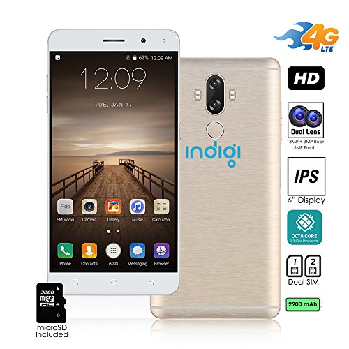 -. Title : Indigi GSM Unlocked 4G LTE 6.0in Smartphone (Android 7.0 Nougat OS + Dual SIM + Octa-Core @ 1.3ghz + FingerP.R.Int Scanner + Bluetooth 4.0 + Google Play Store) (Gold) + 32gb microSD Included