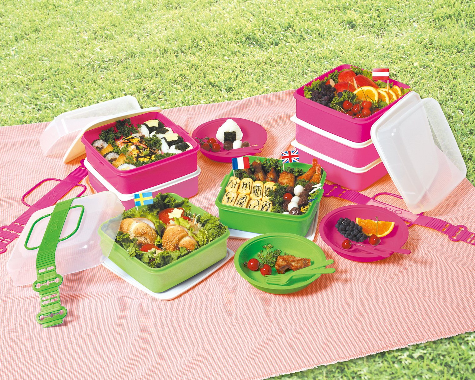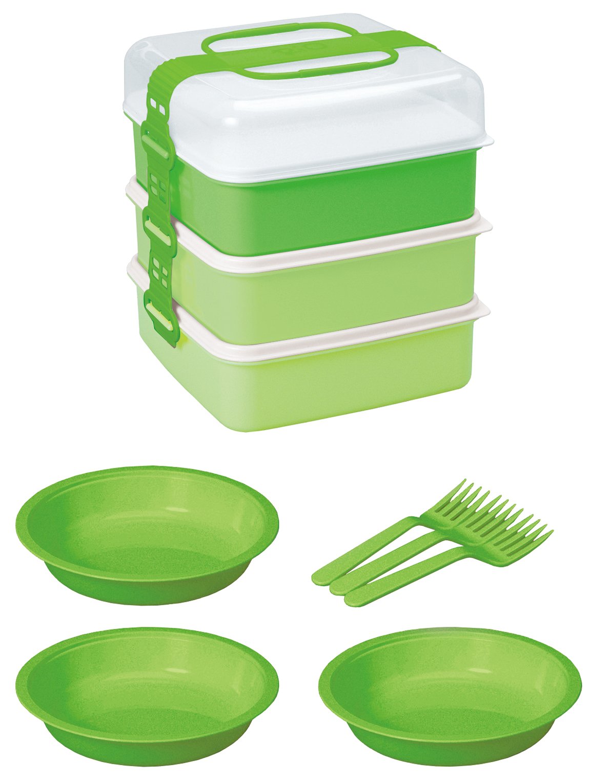 Picnic lunch box Riopakku L 3-stage up dish three fork three with Green