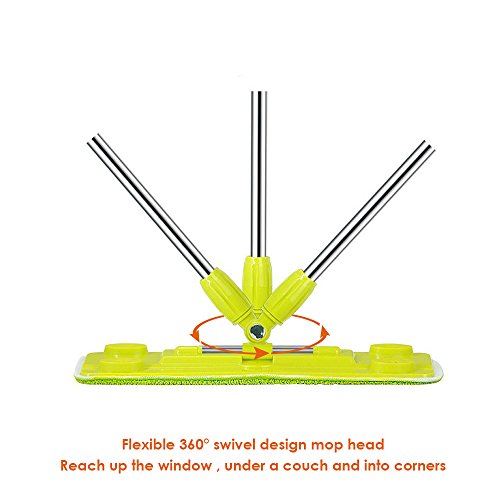 360-Degree Rotate Ergonomic Design - Adjustable telescoping handle with length from 39 to 49 inches. The 360 degree swivel flat mop head makes it easy to reach under the couch or up the windows, protect your neck and back from possible injuries.