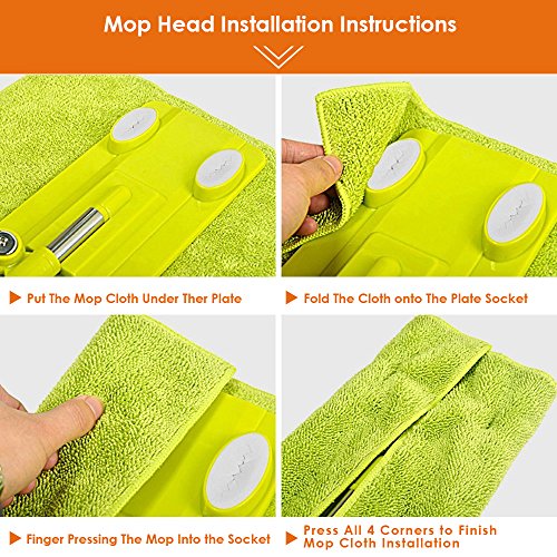 Reliable House Cleaning Solution - Locks on four corners designed for easy cloth or mopping refill installation by gentle press. Can be used for different floor type cleaning, such as hardwood, laminate, tile and glass windows.