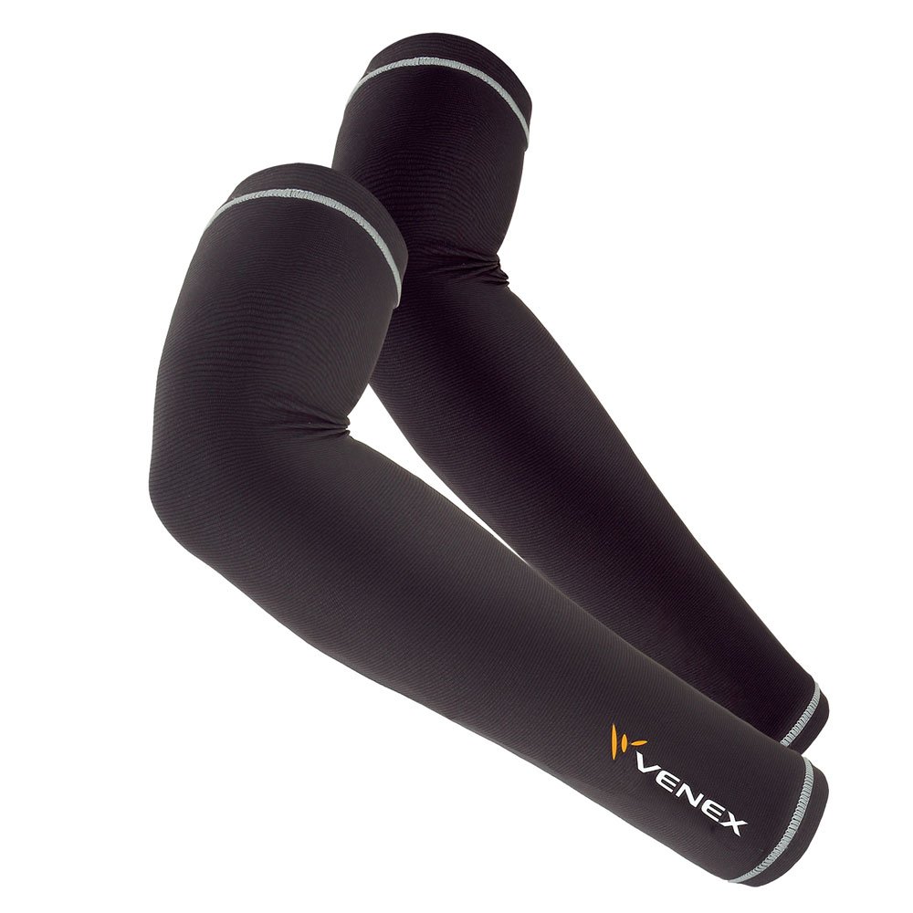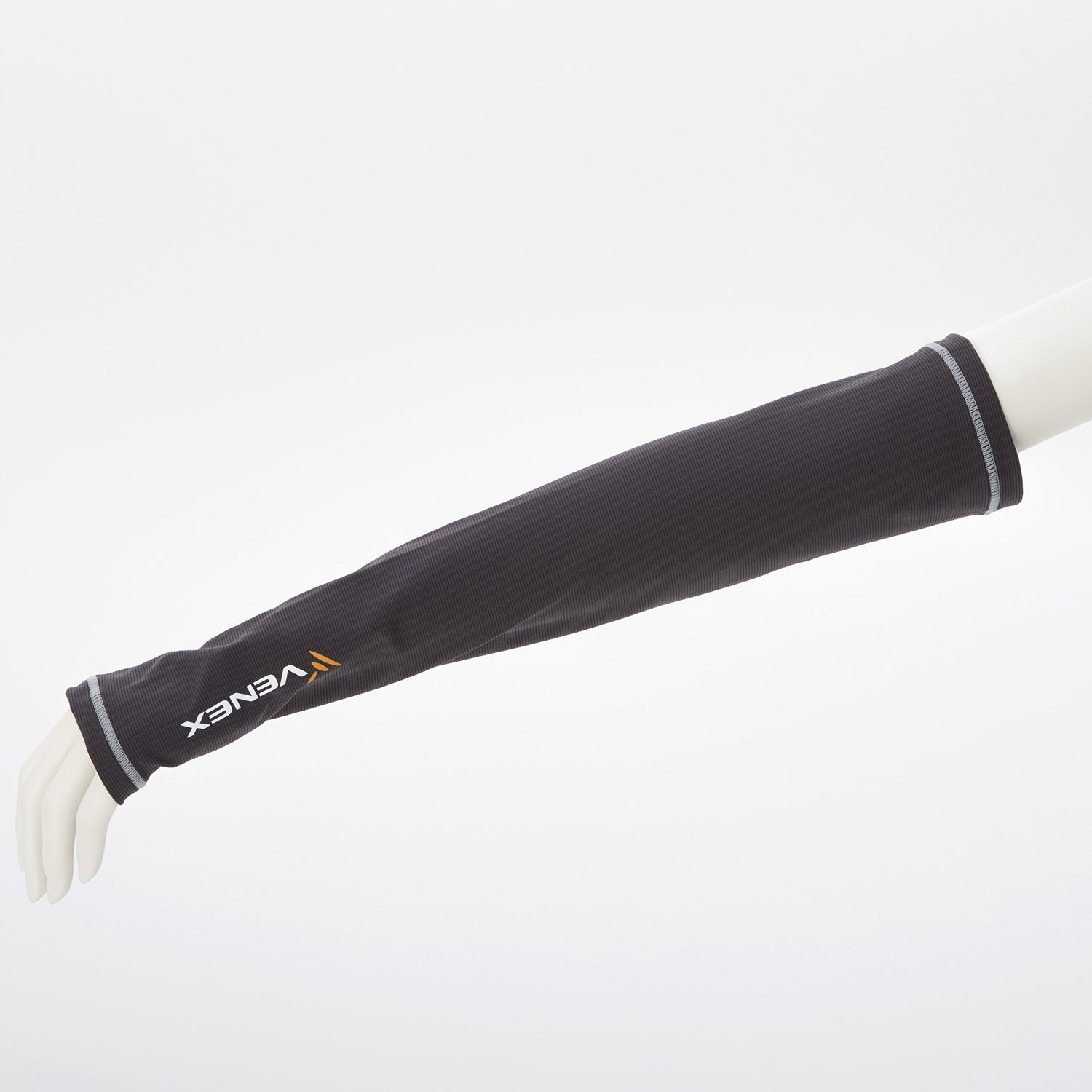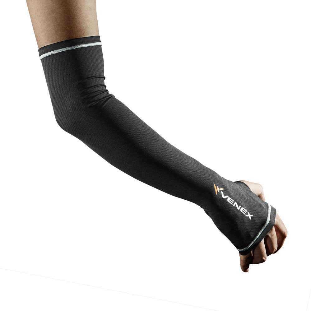 Flexible fabric from the elbow to the back of the hand gently supports the arm.