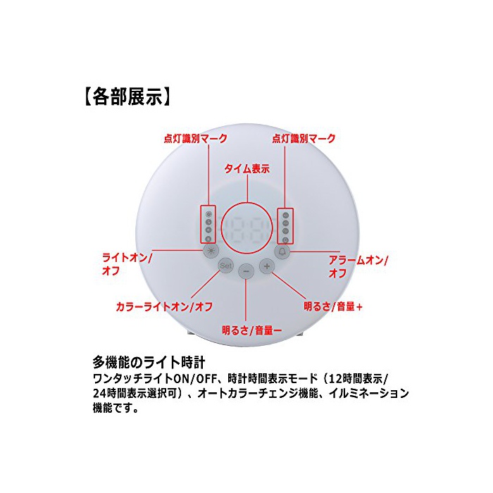 원본상품명: Wake Up Light ウェイクアップライト 朝日模擬光目まし時計 ベッドサイドランプ 多色換 アラム&スヌズ機能付き