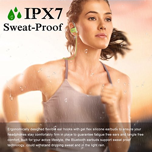 PORTABLE LIGHTWEIGHT AND IPX-7 SWEAT-PROOF DESIGN - ActivBuds feature ergonomically designed flexible ear hooks with gel flex silicone earbuds to ensure your headphones stay comfortably firm in place to guarantee fatigue free ears and tangle free comfort, built for your active lifestyle, the Bluetooth earbuds support sweat proof technology, could withstand dripping sweat and in the light rain