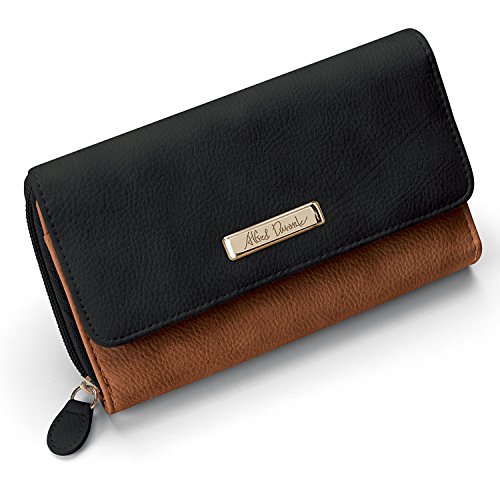 Binding : Apparel Product Description Inspired by the New York woman on-the-go, internationally-known artist and former Cartier designer Alfred Durante is proud to introduce an all-in-one design to meet both your fashion and organizational needs: the Alfred Durante Designer Wallet, a women's faux leather wallet created exclusively for and available ONLY from The Bradford Exchange. Intended to complement the woman who has everywhere to be and everything to carry, this fine women's designer wallet is as versatile as your life needs, with urban-casual perfection that will match any Alfred Durante handbag. Expertly handcrafted in a classic style, this black and brown faux leather wallet features a wealth of organizing options, including 13 credit card slots, a photo ID window and 5 different slip pockets to fit anything from loose change to a passport securely inside. Tied beautifully together with Alfred Durante's classic signature on a silver-toned plate, this women's designer wallet combines fashion and function into one flawless piece. Strong demand is expected for this internationally-known designer wallet, so hurry to get yours. Order now! - Created to accommodate a wealth of organizing options, with 13 credit card slots, a photo ID window and 5 different slip pockets