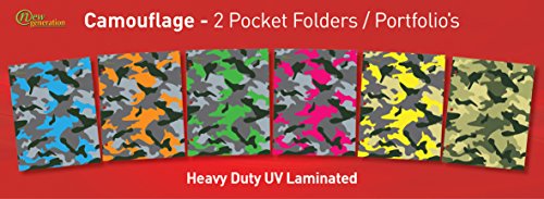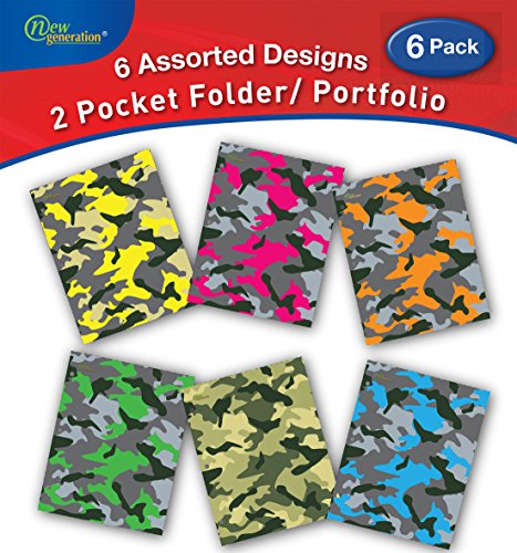 New Generation - back to school / Campus supply 6 PACK ,Camouflage 2 Pocket Folder / Portfolio ,Letter Size , 3 Hole Punch , UV Glossy Laminated portfolio - Assorted 6 Fashionable folders Designs .