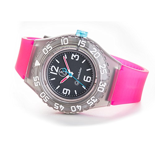 -. Title : Q&Q SmileSolar 20BAR Series Black Dial and Magenta Strap RP16J004Y Powered by Solar