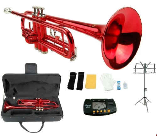 Merano B Flat Red / Silver Trumpet with Case+Mouth Piece+Valve Oil+Metro Tuner+Black Music Stand