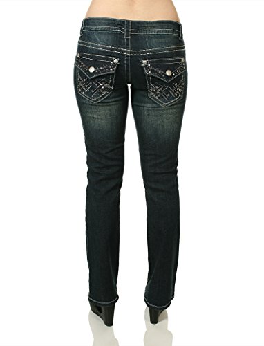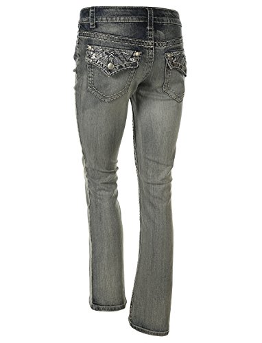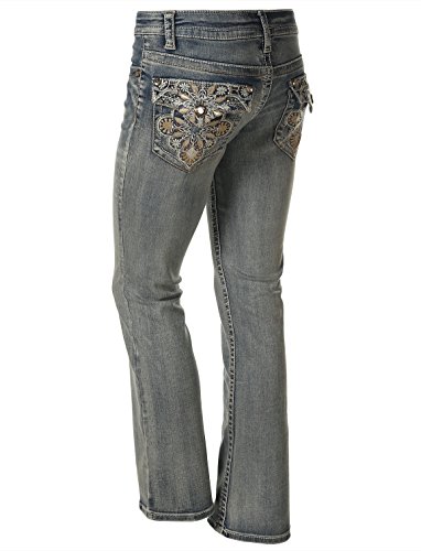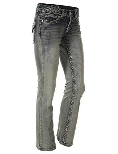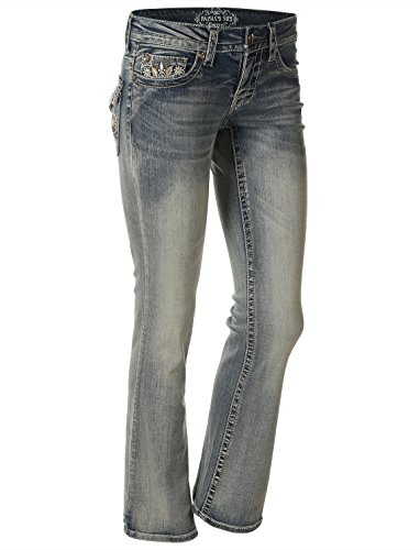 -. Title : Paisley Sky Womens Fashion Denim Bootcut Jeans with Flap on Back Pocket