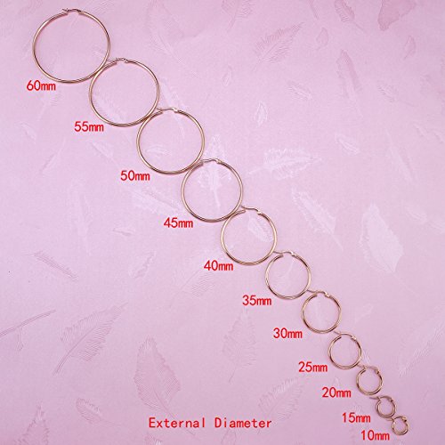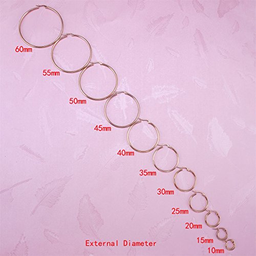-. Feature : Material: 316 stainless steel - Hypoallergenic,durable; / Size Options: 10mm, 15mm, 20mm, 25mm, 30mm, 35mm, 40mm, 45mm, 50mm, 55mm, 60mm; / High polished surface, perfect weight,comfortable to wear; / Classic trendy delicate hoop earrings set is a good choice for everyday wear and special occasions; / Each set comes with a velvet gift bag. Ready for gifting and makes a meaningful gift for your loved ones and for any occasions.