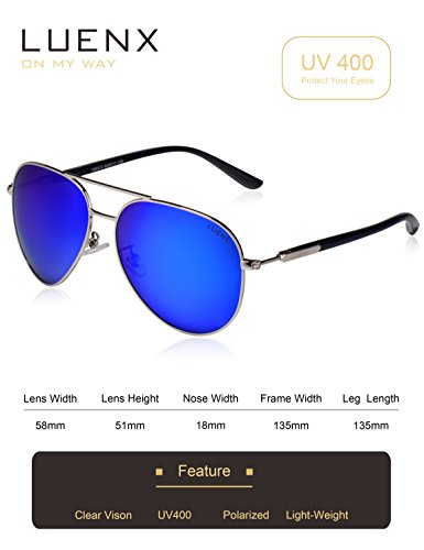 -. Brand : LUENX -. Department : womens -. Feature : 100% UV Protection, Waterproof Coating, Durable & Shatterproof, Smudges & Fingerprints Resistant. / First Choice as A Gift.Unisex.Aviator Style.Good for Driving & All Out Door Activities for all Day. / Limited Time Special Pricing and Elegant Glasses Accessories for Free, Get LUENX'S Sunglasses Now -. Model : 1503W -. ProductGroup : Apparel -. ProductTypeName : EYEWEAR -. Title : LUENX Aviator Sunglasses Womens Polarized Mirror with Case - UV 400 Protection