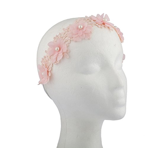 Pink Flower Floral Faux Pearl Lace Stretch Headband