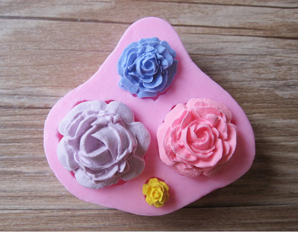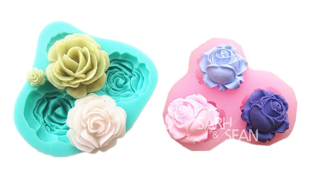 2個セット 美しい バラ 3ピース 4ピース シリコンモールド アロマ 石鹸 樹脂 粘土 レジン シリコン モールmmk-g44【1~2日発送】