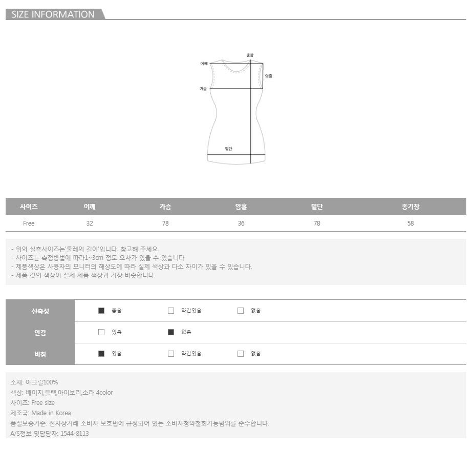 바디에 편안하고 보송하게 감기는 착용감의 아크릴 100%의 소재로