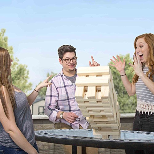 Studio : TMG Publisher : TMG Binding : Toy Product Description The Nontraditional Giant Wooden Blocks Tower Stacking Game takes a classic stacking game to new heights. The 54 wooden blocks are hand-crafted out of pinewood, and can stack over four feet tall. The dimensions of these blocks allow the game to be set up with spaces between the blocks, making it much more challenging than traditional stacking games. With a nylon carrying case for easy storage, the game is perfect for backyard parties, picnics at the beach, or just about anywhere. UNIQUE AND CHALLENGING TWIST FROM TRADITIONAL STACKING GAMES - Due to the unique size of the wood blocks, 8.25"x2"x1.187", the game is set up with spaces between the blocks, making it much more challenging than traditional stacking games. The game can stack to over four feet tall, so lots of fun can come tumbling down! HAND-CRAFTED OUT OF PINEWOOD - The wooden blocks are individually hand-crafted out of pinewood, which is an ideal wood for a stacking game. The pieces are solid with smooth edges, and easy to stack for the whole family. INCLUDES STRONG NYLON CARRYING CASE FOR EASY TRANSPORT - To make storage and transport of this fun outdoor lawn game, it comes with a strong and secure nylon bag, in which all the block fit, so you can take this to the beach, park, picnic or in your own backyard. PRODUCT DETAILS - Complete set includes 54 hand-crafted blocks made out of pinewood, each measuring 8.25" long x 2" wide x 1.187" high. All the blocks fit nicely in a secure nylon carrying case to make transport and storage easy. 0