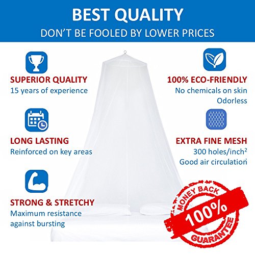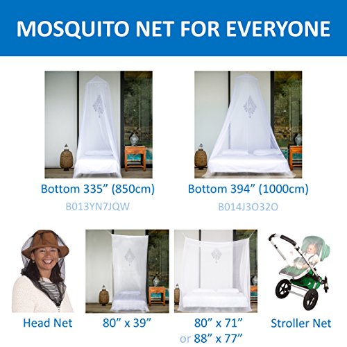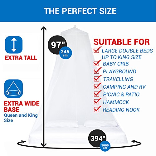 GIVE YOUR BEDROOM AN AFFORDABLE MAKEOVER: Bored with your bedroom? This Mosquito Net gives an instant touch of elegance and romance to the decor. It has the IDEAL SIZE (H97" x Ø394"). Perfect as tent around a baby bed or covering a king size bed or any size in between. This Mosquito Net is BIGGER than most other nets and features an opening for easy entrance. Also a great GIFT. Additionally, when you order this net, a portion of the profits goes to charity.