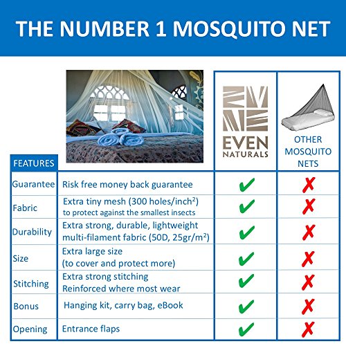 100% MONEY BACK GUARANTEE: Customer satisfaction is our top priority. All EVEN Naturals® products come with a 1 month guarantee: if you experience ANY problems with your Mosquito Net, we refund your entire purchase instantly. Buy now RISK FREE today and experience the EVEN Naturals® difference!
