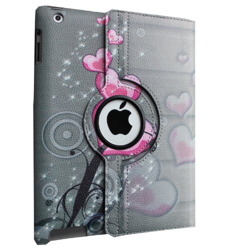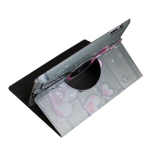 JYtrend (TM) 360 Degrees Rotating Stand Leather Magnetic Smart Cover Case For iPad Air/iPad 5 With Bonus Screen Protector, Stylus and Cleaning Cloth, Heart Flower