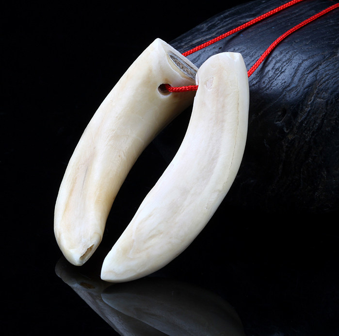In our country folk, dogs, especially black dog had evil argument. Because a dog alone at night in the dark, when it Moren, sometimes barking, people think dogs are definitely saw something dirty, dirty people see things, and the dog will use his methods protect themselves and did not matter, because it itself has those sharp teeth, has the effect of evil spirits, so people have a lot of people like to collect dog teeth, dog teeth used to make bracelets, necklaces or a Dog etc., worn on the body, used to ward off evil. Dog teeth are generally only when the killings of civil, collected under the dog teeth treatment, marked holes, with a small red or black ribbon strung, you can wear the same time you can add something else things strung together, trim or some other evil pieces.