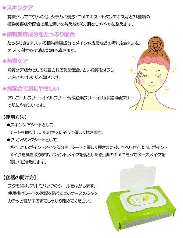ゲルマニウム、オリーブ抽出物、玄米抽出物を主成分にした韓国コスメメーカー、チャームゾーンのロングヒットブランド「Ge」シリーズのスキンケアシートです。さっとひとふきで「スキンケア」「皮脂・汚れのオフ」「メイク落とし」「角質ケア」ができます。31種類の植物美容成分配合で肌にうるおいをあたえながら、つややかに整えます。 |