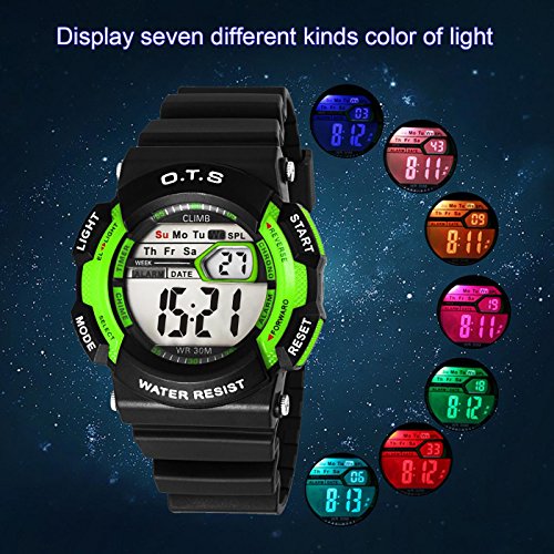 Alarm clock,stopwatch,12/24 hour formats,Calendar,week and seven-color night display.Cartoon cute and fashion for your child.