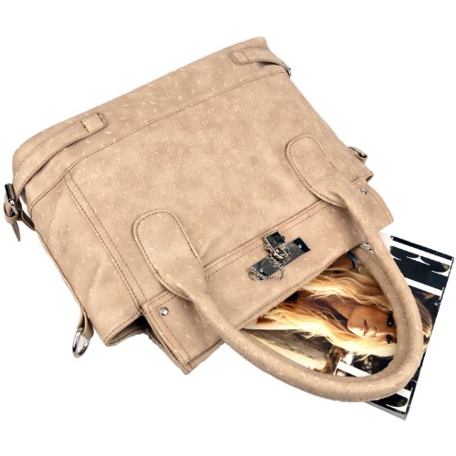 - Title : MG Collection CHIONE Beige Ostrich Embossed Padlock Soft Office Tote Handbag