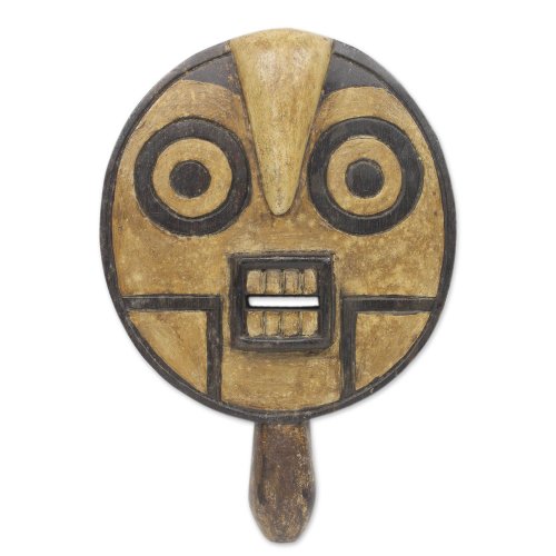 NOVICA Decorative Malian Large Sese Wood Mask, Beige, 'Protective Spirit'