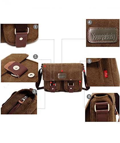 -. Brand : Youngerbaby -. Department : mens -. Feature : Eco-friendly casual life style; Washed cotton canvas messenger bag. / Main compartment & inside cellphone and zipper pocket. / Adjustable shoulder strap for easy and comfortable carrying / Overall dimension: Approx. 12.6"L x 10.6"H x 3.9" W ; Easy to carry A4 books / Feature: Portable and Put Your Keys,Wallet,Phone and Other Things -. ProductGroup : Apparel -. ProductTypeName : LAGE -. Title : Youngerbaby Men Canvas Travel Briefcase Handbag Crossbody Satchel Messenger Bags