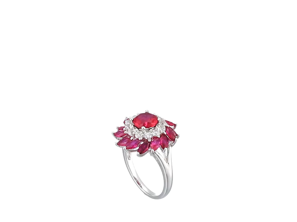 Sterling Silver and Created White Sapphire Flower Ring, Size 7