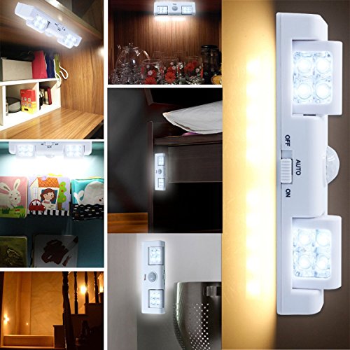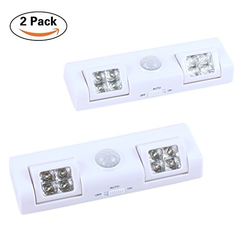 8 LED Portable Motion Sensor Light - Auto On/Off Night Light - Battery Operated Great for Bedroom, Hallway and Stairs Lighting - 2pack