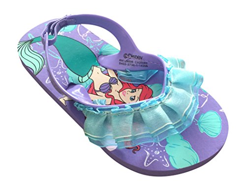 -. Binding : Apparel -. Brand : Disney -. ClothingSize : 7-8 M US Toddler -. Color : Green -. Department : girls -. EAN : 0758524014279 -. Feature : Authentic Disney Store Product / The Little Mermaid screen art on footbed / Straps feature three layers of ruffled organza with sequins* / Elastic Heel; Textured non-slip sole / Size 7-8 M US Toddler -. ProductGroup : Shoes -. ProductTypeName : SHOES -. Size : 7-8 M US Toddler -. Title : Disney Store Ariel The Little Mermaid Flip Flops Sandals Toddler Size 7 - 8 With Strap -. UPC : 758524014279
