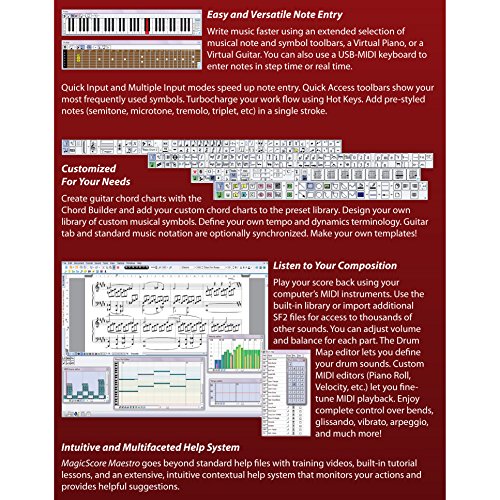 Input notes quickly via the extensive Note/Symbol Tool Palette, a virtual piano or guitar, Chord Builder, or your MIDI device