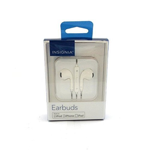-. Title : Insignia Earbuds Headphones In-Line Volume Control Microphone White NS-CAEP013