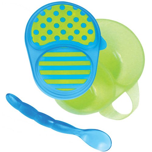 -. Title : Sassy First Solids Feeding Bowl w/ Spoon - Green & Blue