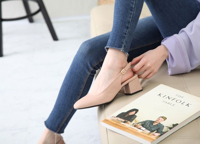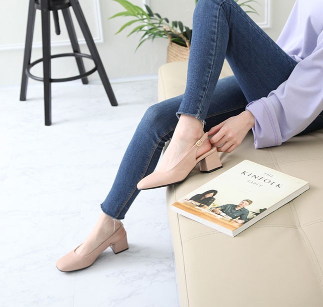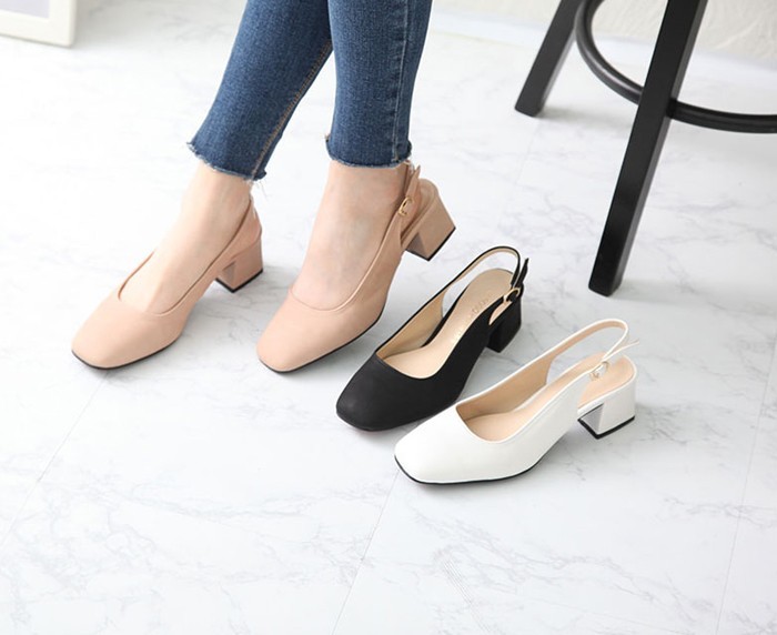 商品名:パンプス レディース スリングバック 太ヒール チャンキー 2018 春 ファッション 靴 婦人靴