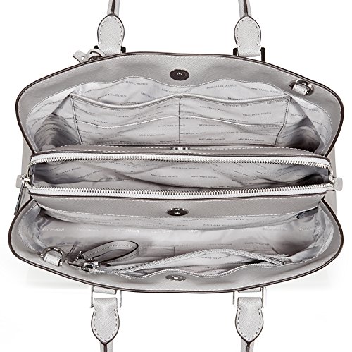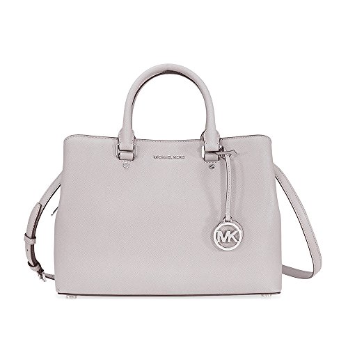 -. Title : Savannah Medium Leather Satchel in Moss - Pearl Grey