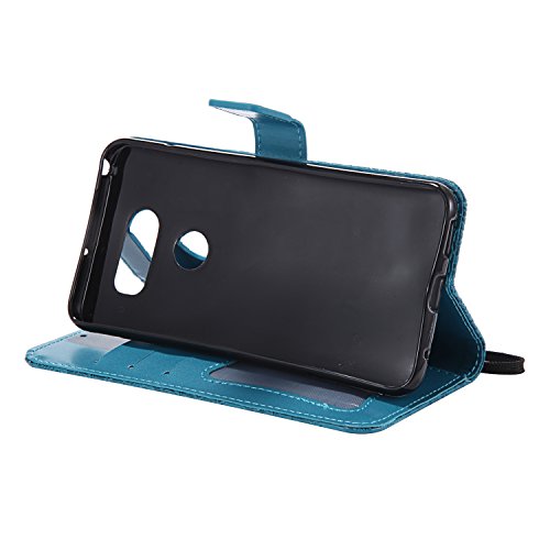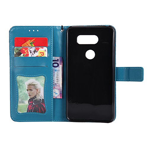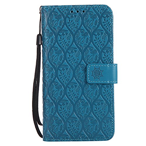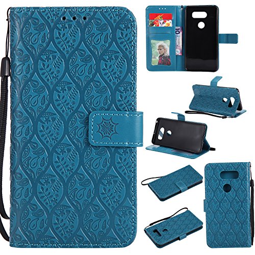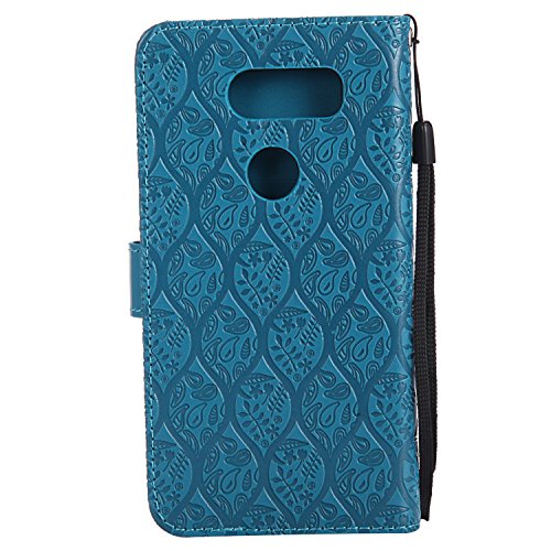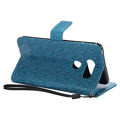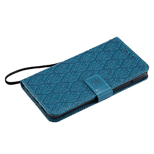 LG V30 / V30+ Wallet Case,LG V30 / V30+ Flower Case,HAOTP Mandala Rattan Flower Embossed PU Leather Magnetic Flip Card Holders & Hand Strap Purse Case for LG V30 / V30+ Blue