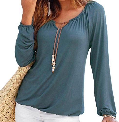 -. Title : Nicellyer Women Straps Round Neck Long Sleeve Drawstring Tees Tank Top Blue M