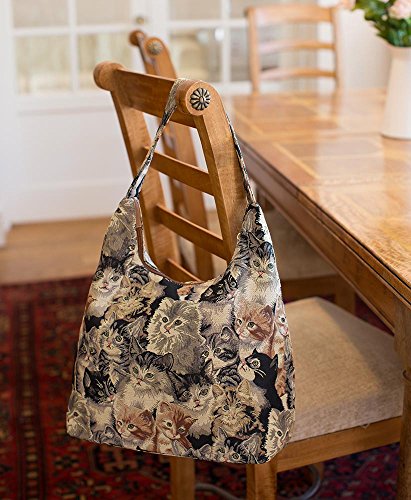 Cat Print Ladies Fashion Canvas Tapestry Top Zip Hobo Shoulder Bag Beach Bag by Signare (HOBO -CAT)