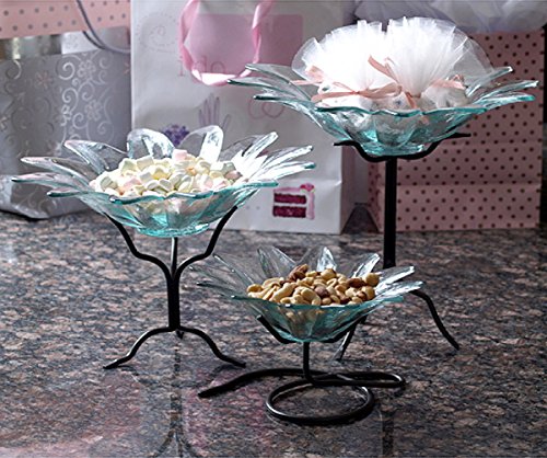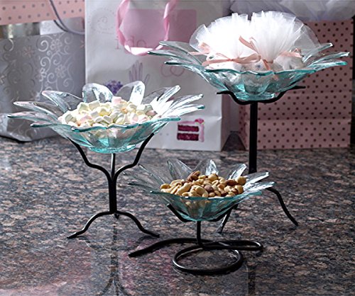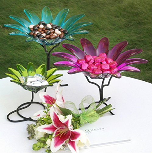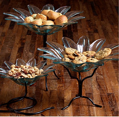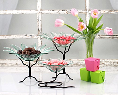 -. Feature : Textured Glass / Lightweight / Daisy Bowl Shape / Powdercoated Black Metal Stand Included / Height: 7 1/2 in., Length: 11 3/4 in., Width: 11 3/4 in., Capacity: 16.9oz / 500ml