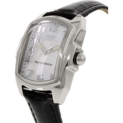 Glistening with exquisite silver tones, the Invicta Women's Baby Lupah Collection Interchangeable Watch Set will turn heads with its ornate mother-of-pearl dial and its smooth stainless steel bezel. Protected by a flame-fusion crystal, the dial face is elegantly complemented by two silver-tone sword hands and an attractive set of Arabic numeral hour markers. The dial is bordered with hatched minute markers. The watch sports a dark slate-grey leather band with a buckle-style clasp and comes with additional dark brown, pink, seafoam, and white leather straps for customization. Water resistant to 330 feet (100 m), this timepiece also boasts the reliability of Swiss-Quartz movement. For stylish presentation, an exclusive Invicta gift box is included.Lupah Collection