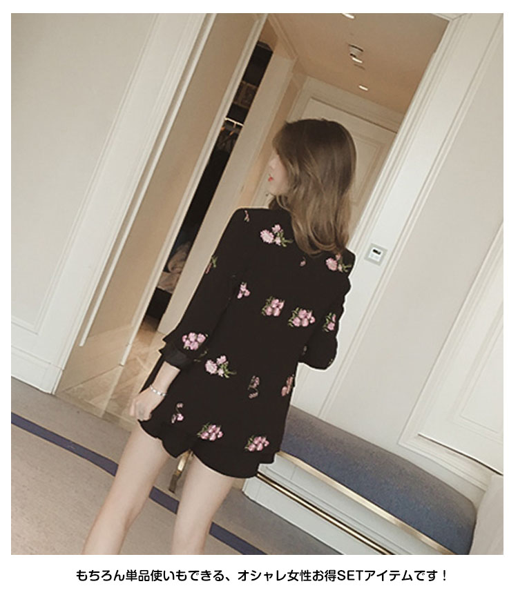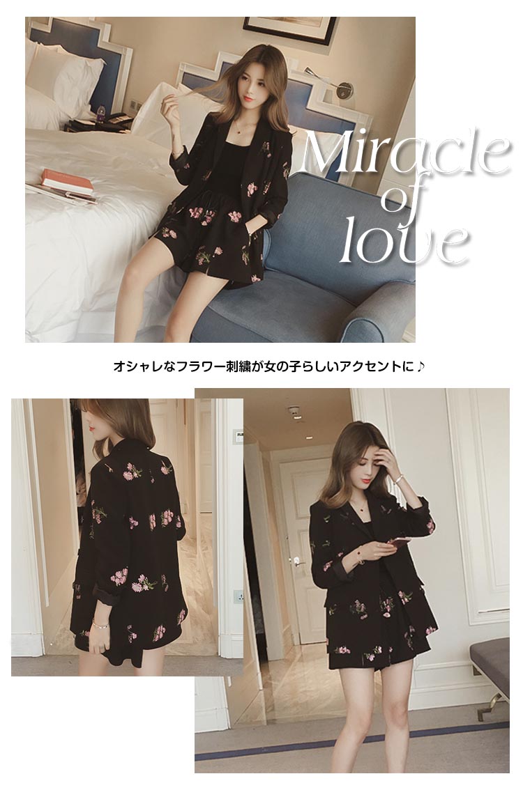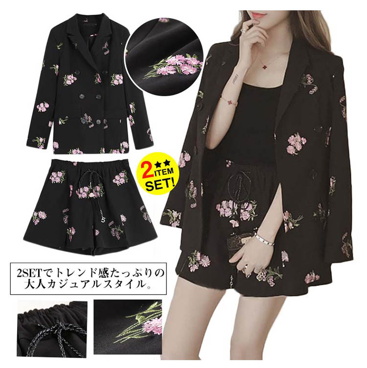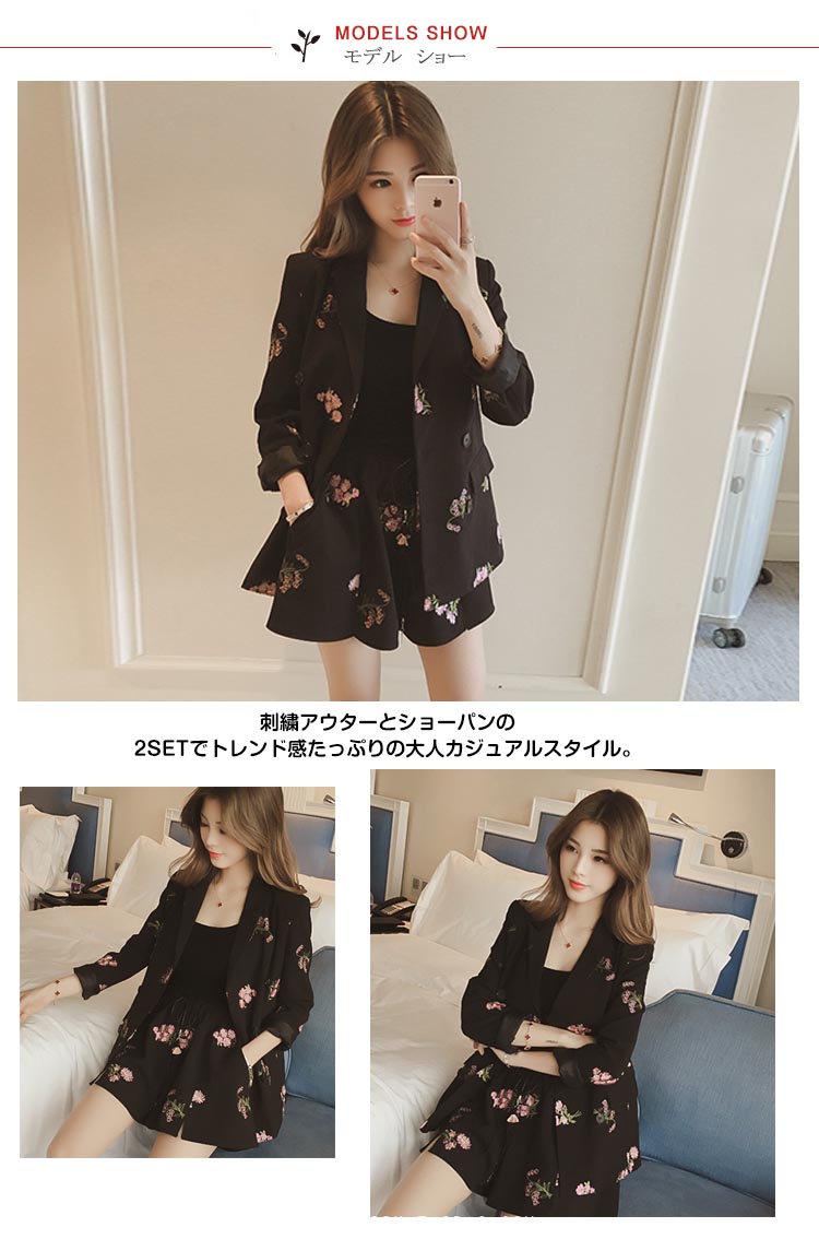 | 刺繍アウターとショーパンの2SETでトレンド感たっぷりの大人カジュアルスタイル。オシャレなフラワー刺繍が女の子らしいアクセントに♪さらっとした素材感で春夏らしい爽やかな雰囲気が嬉しいね☆もちろん単品使いもできる、オシャレ女性お得SETアイテムです! | |