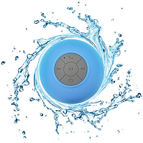 -. Title : Bluetooth Mini Shower Speaker - Hands Free, Water Proof, Portable Speaker with Speakerphone, Built-in Mic, 6hrs of playtime, Control Buttons and Dedicated Suction Cup