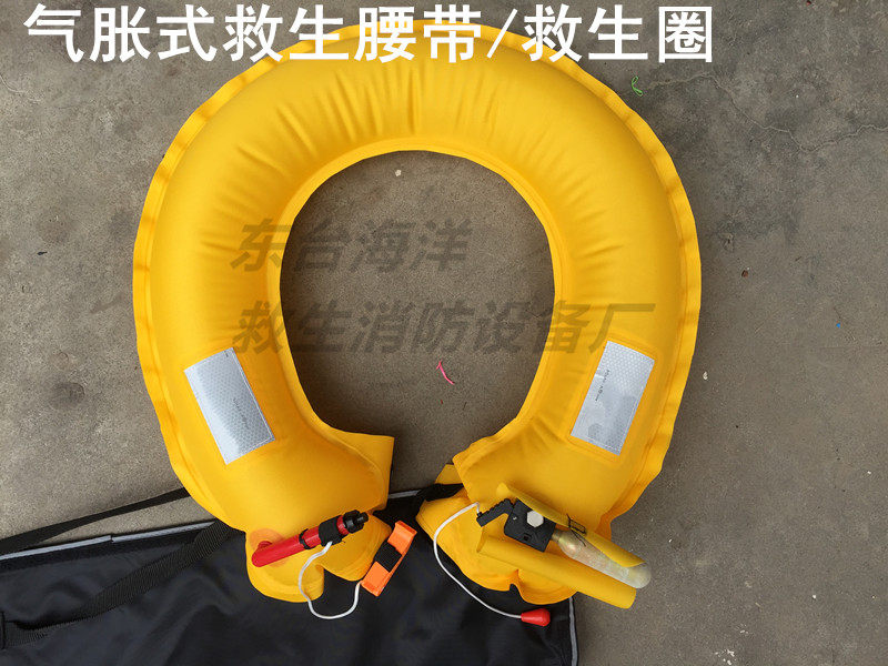 (Inflatable life-saving belt) after the inflatable: automatic type will automatically within 5 seconds to form a horseshoe-shaped or new rod-shaped life buoy, surrounded by the fall of the waist, so that those who fell into the water, so as to save lives The role of (manual type can only hand inflatable) buoyancy more than 9 kg, the human body floating in the water, to achieve life