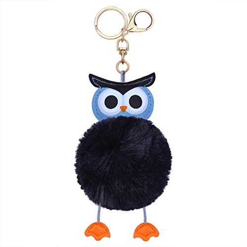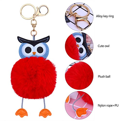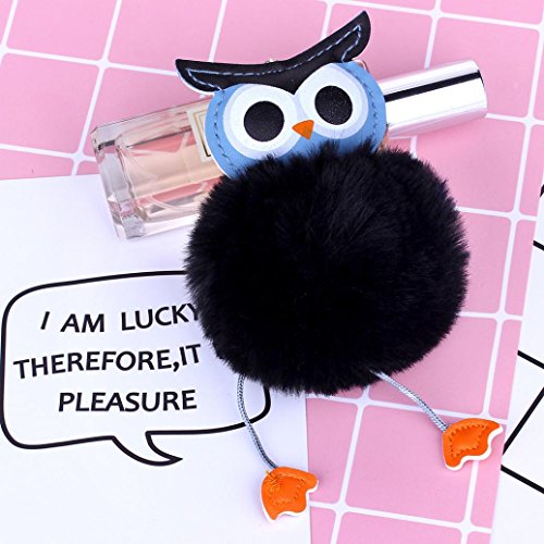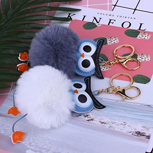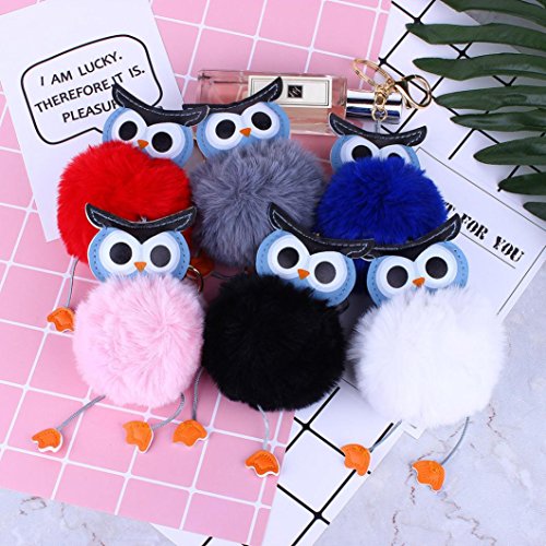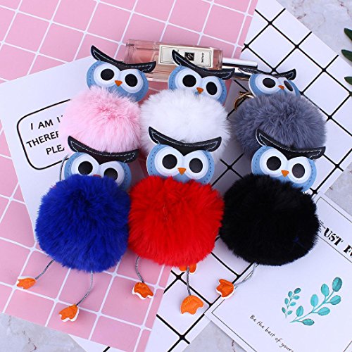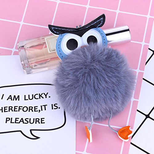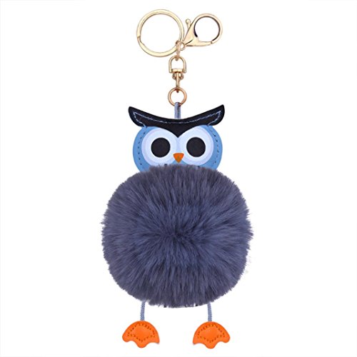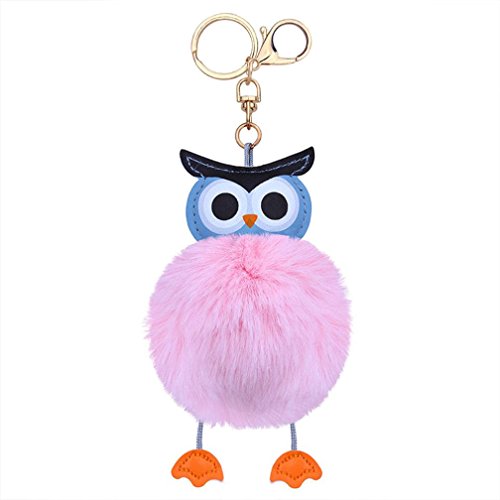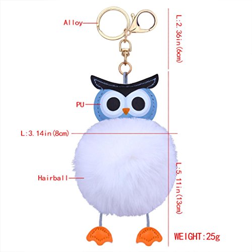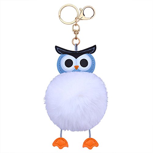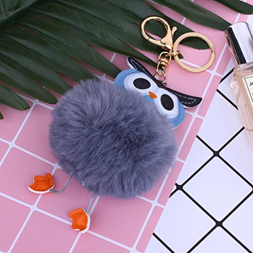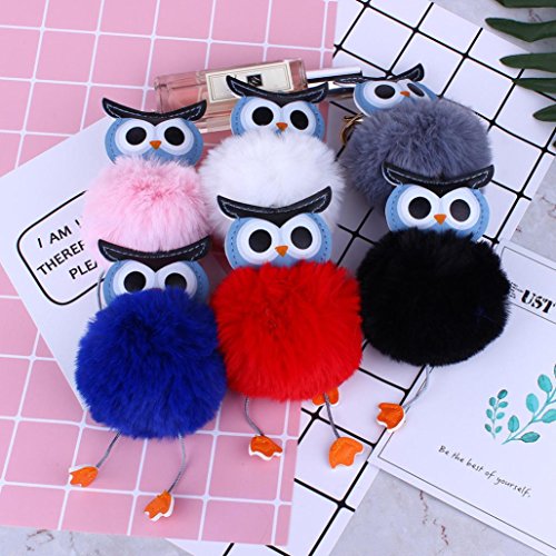 | (Hometom)/Accessories/Wallets, Money Key Organizers/DIRECT FROM USA/Hometom Key Chains, Owl Fluffy Plush Pendant Metal Chain Keychain Keys Ring Keyring Bag pedant |