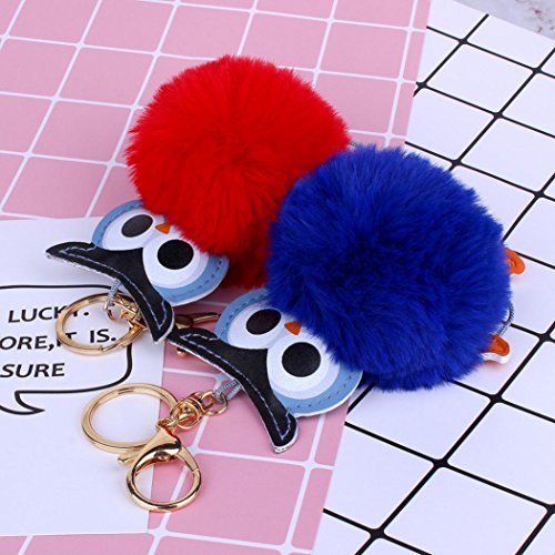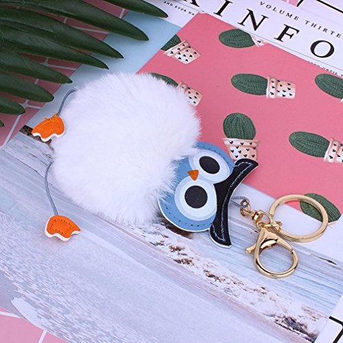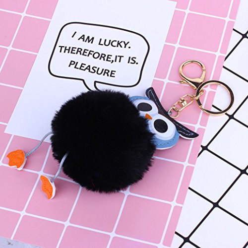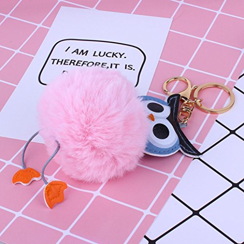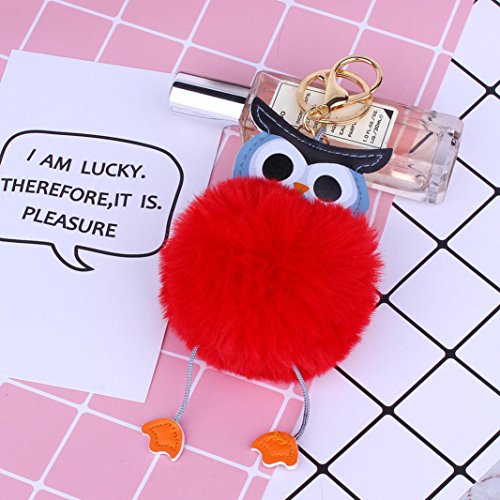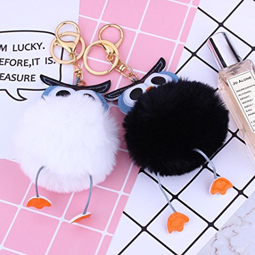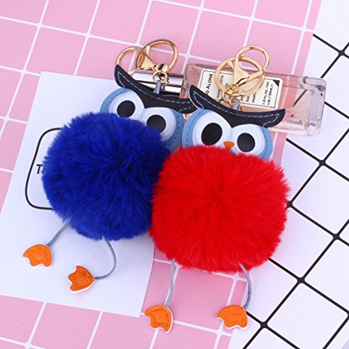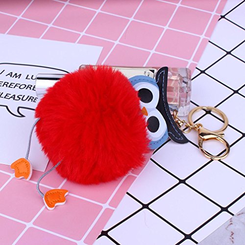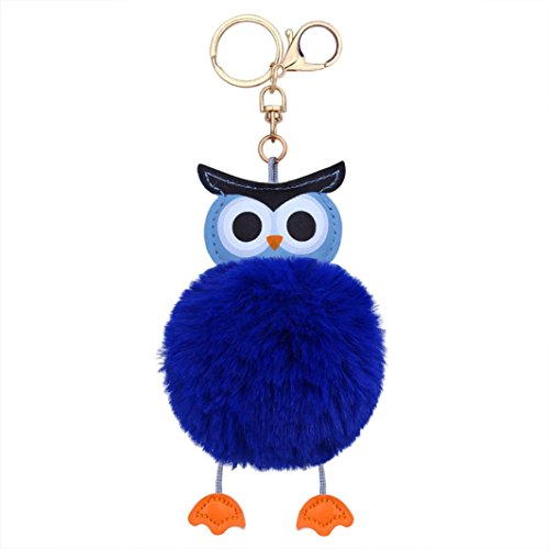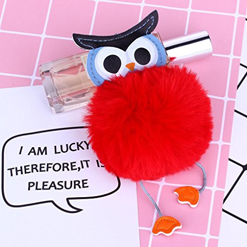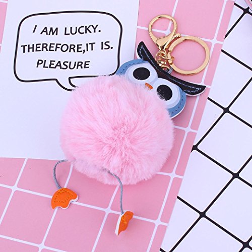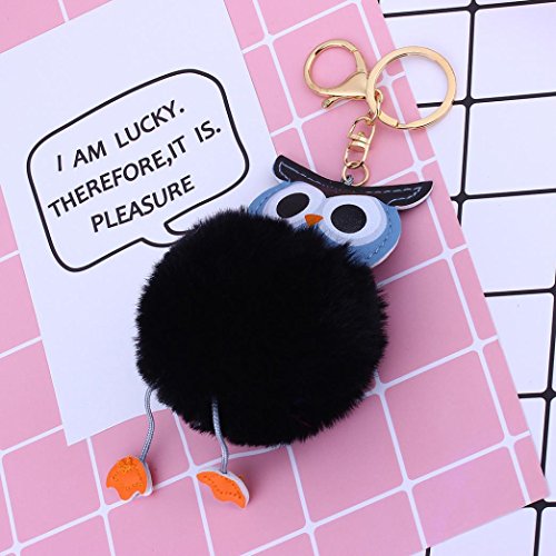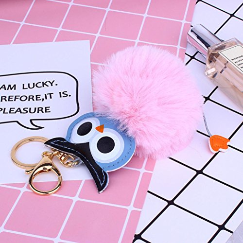 | (Hometom)/Accessories/Wallets, Money Key Organizers/DIRECT FROM USA/Hometom Key Chains, Owl Fluffy Plush Pendant Metal Chain Keychain Keys Ring Keyring Bag pedant |